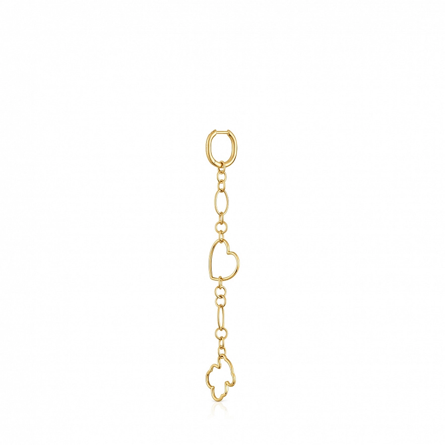 Моносерьга TOUS New Silueta из серебра 925 пробы с покрытием Vermeil с мотивами. Мотивы: 14,5 мм сердце и 16 мм мишка. Размер серьги: 90 мм.