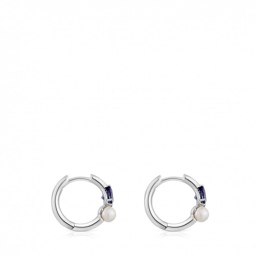 Серьги-кольца TOUS Ivette из белого золота 18 карат с иолитом и культивированной пресноводной жемчужиной. Размер драгоценного камня: 4 мм. Размер культивированного жемчуга: 3 мм. Размер серьги: 9 мм.