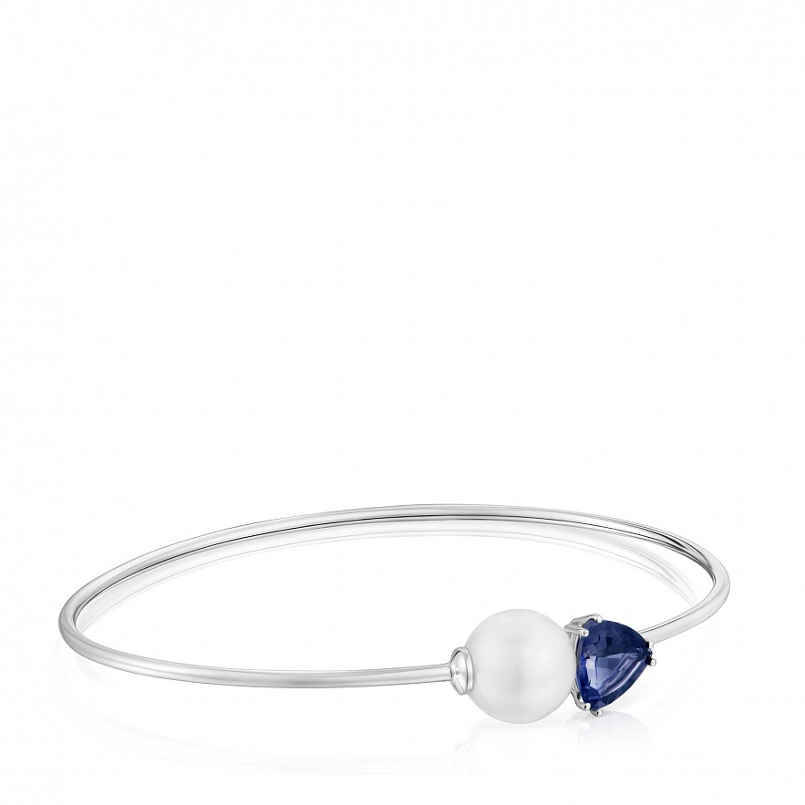 Браслет TOUS Ivette из белого золота 18 карат с иолитом и культивированной пресноводной жемчужиной. Размер драгоценного камня: 8 мм. Размер культивированного жемчуга: 9,5 - 10 мм. Длина браслета: 17 см.
