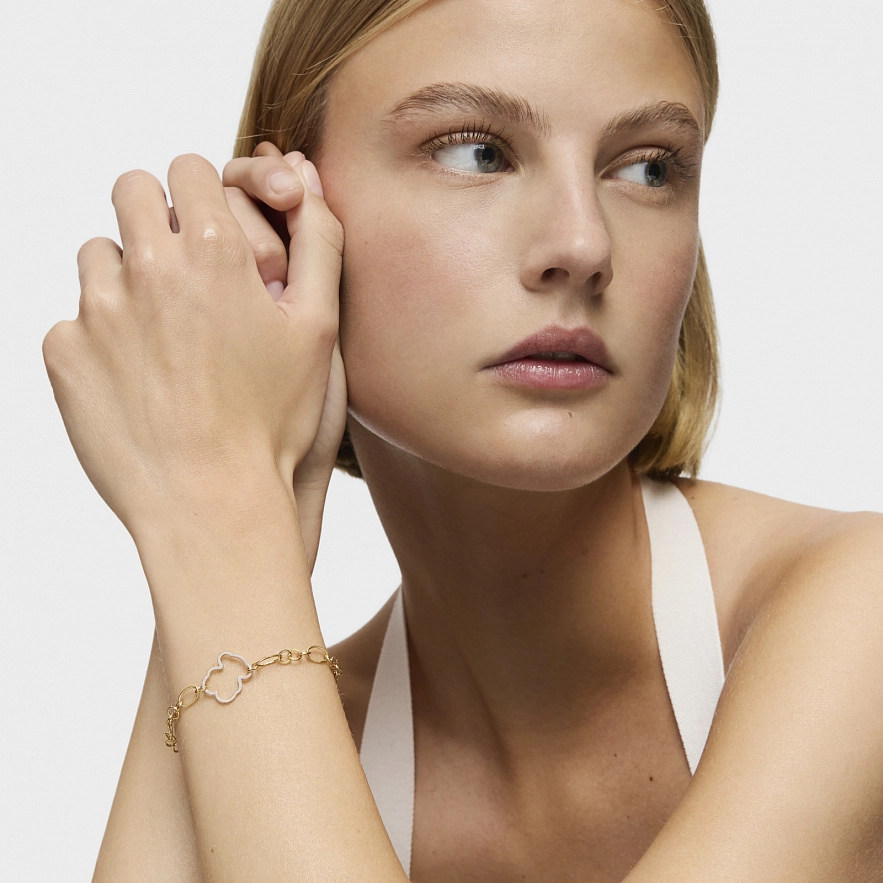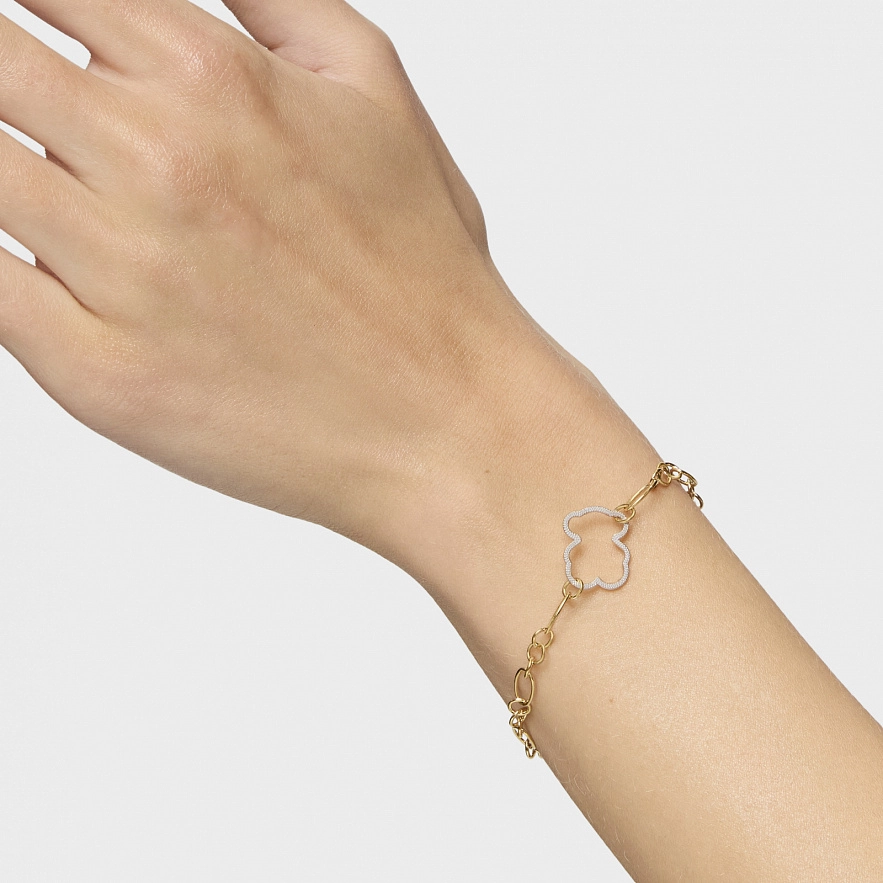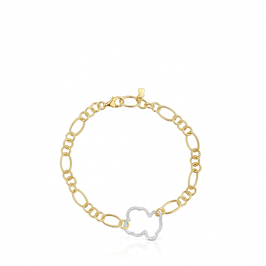 Браслет TOUS New Silueta из серебра 925 пробы с покрытием Vermeil и мишкой из серебра 925 пробы с декоративной техникой фрезерования, с белым родиевым покрытием. Размер мишки: 16 мм. Длина браслета: 18 см. Застежка лобстер.