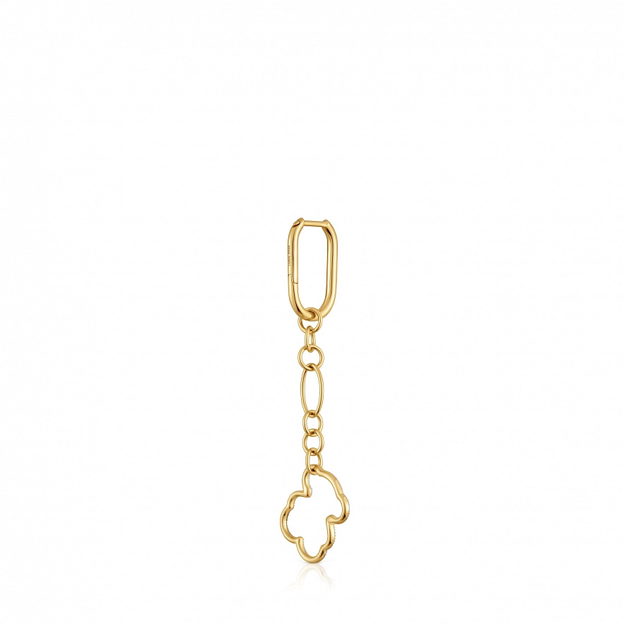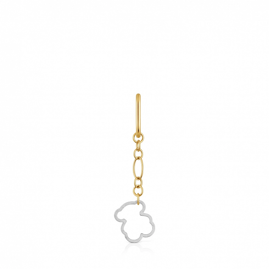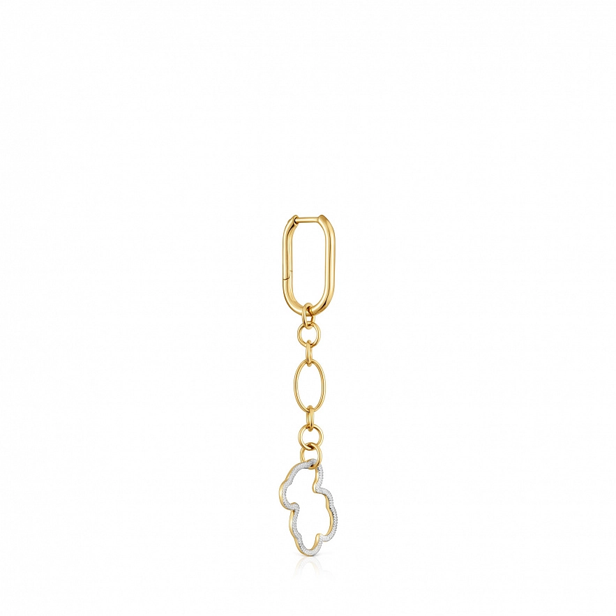 Серьга TOUS New Silueta из серебра 925 пробы с покрытием Vermeil с и мотивом мишки из серебра 925 пробы с декоративной техникой фрезерования, с белым родиевым покрытием. Размер мишки: 16 мм. Размер серьги: 60 мм.