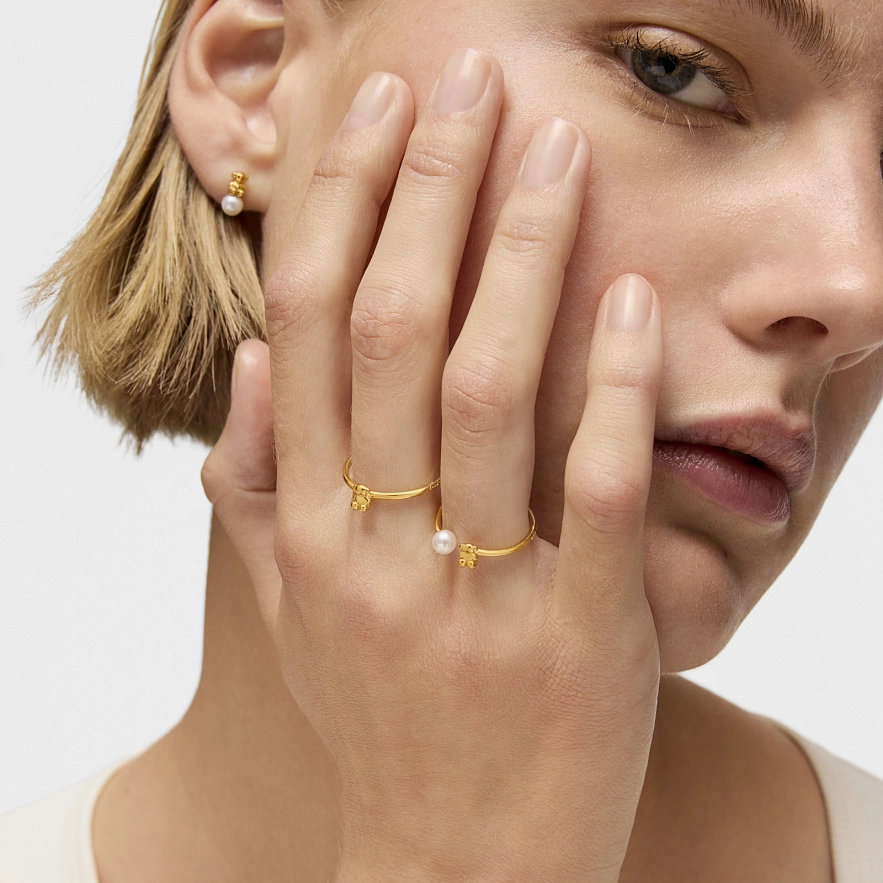 Кольцо TOUS Bold Bear из 18-каратного желтого золота с мотивом медвежонка и культивированной пресноводной жемчужиной. Размер культивированной жемчужины: 4,5 мм. Размер медвежонка: 5 мм. Толщина кольца: 2,3 мм.