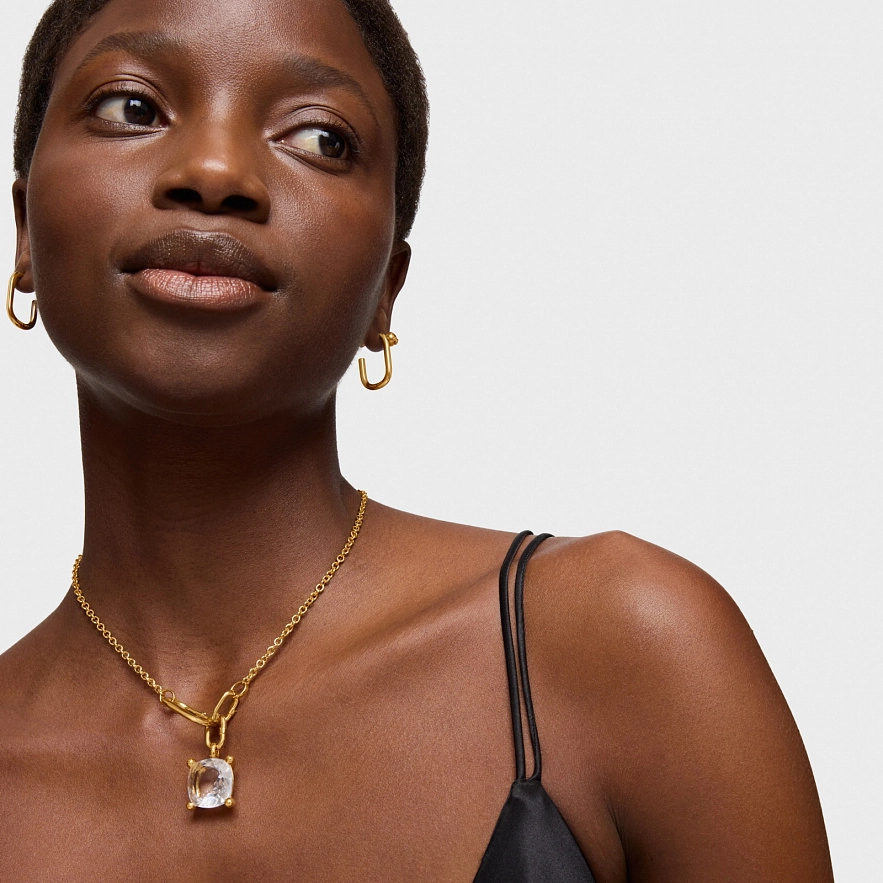Кулон TOUS Color White из серебра 925 пробы с покрытием Vermeil и ограненным горным хрустальным кварцем квадратной формы. Размер мотива: 18 мм. Это изделие не включает цепочку.