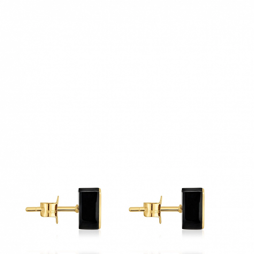 Серьги TOUS 1950 из желтого золота 18 карат с ограненным ониксом в форме тюльпана. Размер сережек: 8 мм.