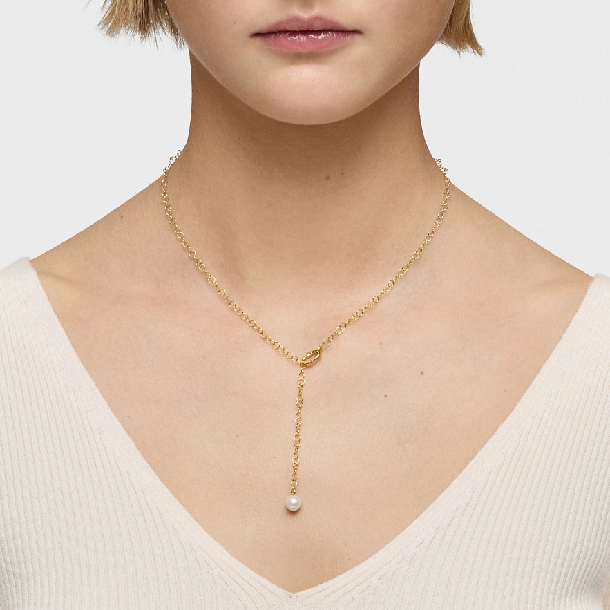 Колье TOUS Hold Oval из желтого золота 18 карат с культивированным пресноводным жемчугом. Размер культивированного жемчуга: 7-7,5 мм. Длина колье: 50 см. Застежка - кольцо Hold Oval.
