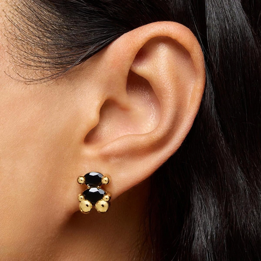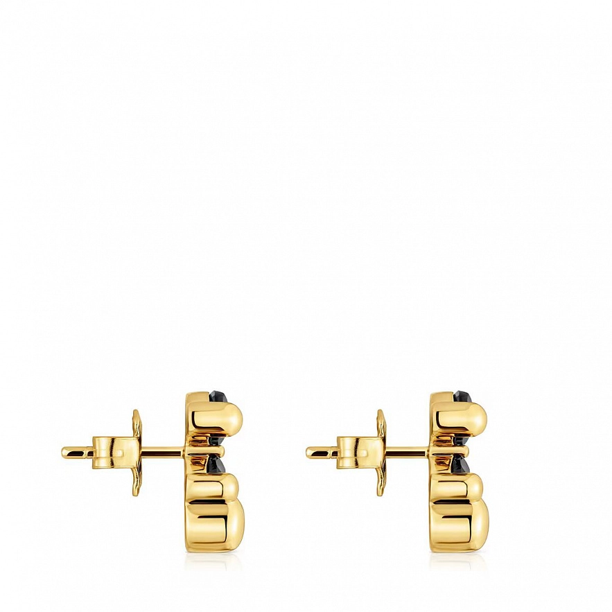 Серьги TOUS Color Bear из серебра 925 пробы с покрытием Vermeil , и ограненным ониксом в форме мишки. Размер серьги: 14 мм.