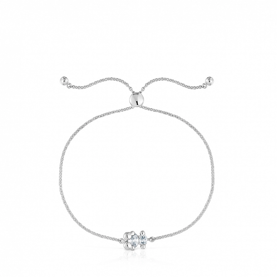 Браслет TOUS Color Bear из серебра 925 пробы и горного хрустального кварца овальной огранки в форме медведя. Размер мотива: 8 мм. Длина браслета: 23 см. Застежка-слайдер.