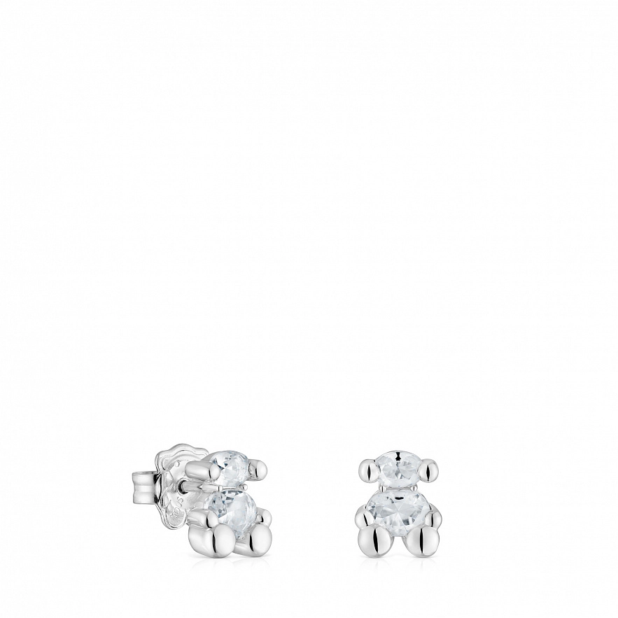 Серьги TOUS Color Bear из стерлингового серебра и горного хрусталя кварца овальной огранки в форме медведя. Размер серег: 8 мм.