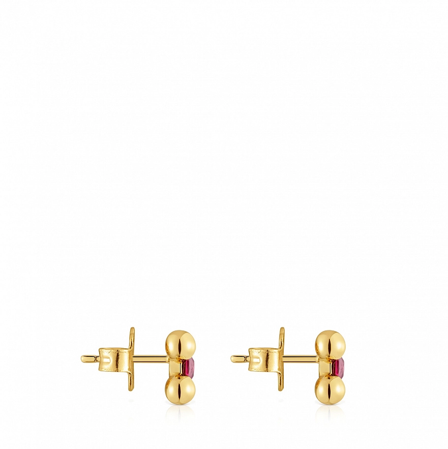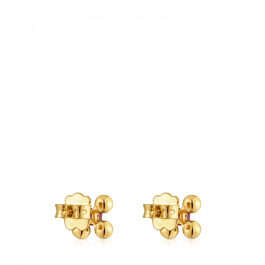 Короткие серьги TOUS Sugar Party из серебра 925 пробы с покрытием Vermeil и круглым ограненным родолитом. Размер драгоценного камня: 3 мм. Размер серьги: 8,6 мм.