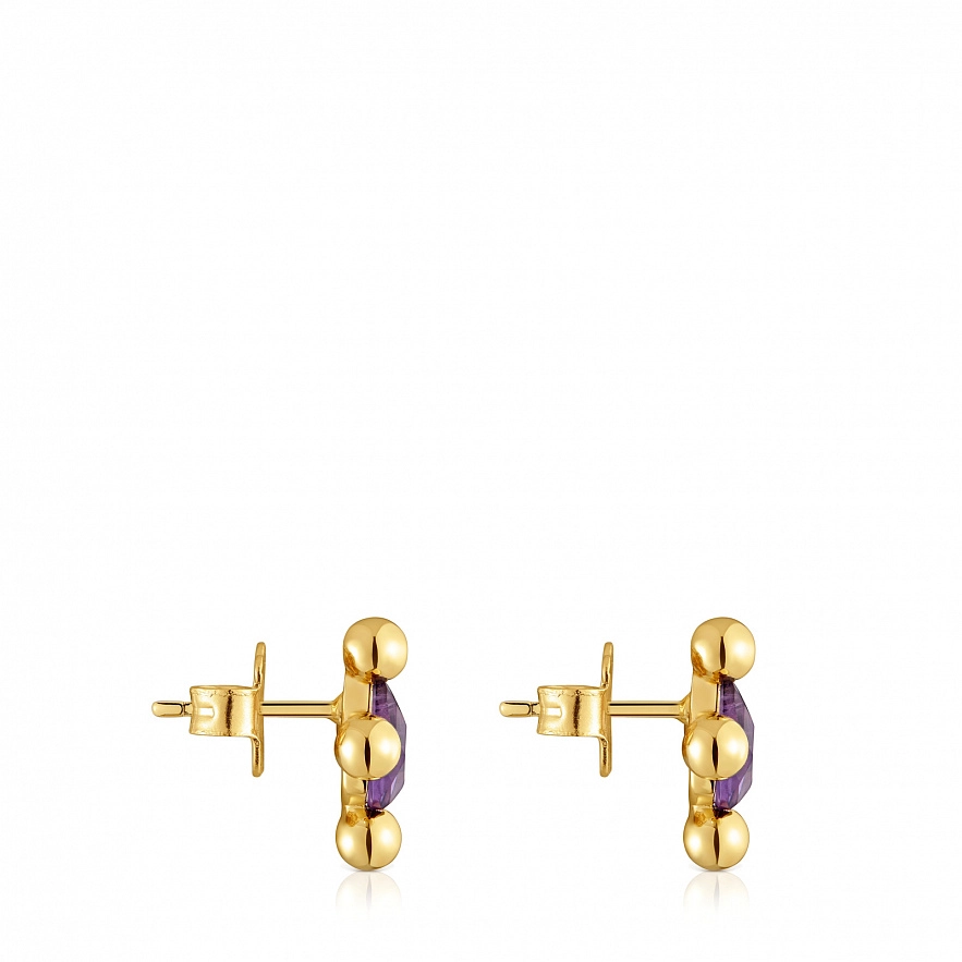 Серьги TOUS Sugar Party из серебра 925 пробы с покрытием Vermeil и аметистом. Размер камня: 7 х 3,5 мм. Размер сережек: 14 мм.