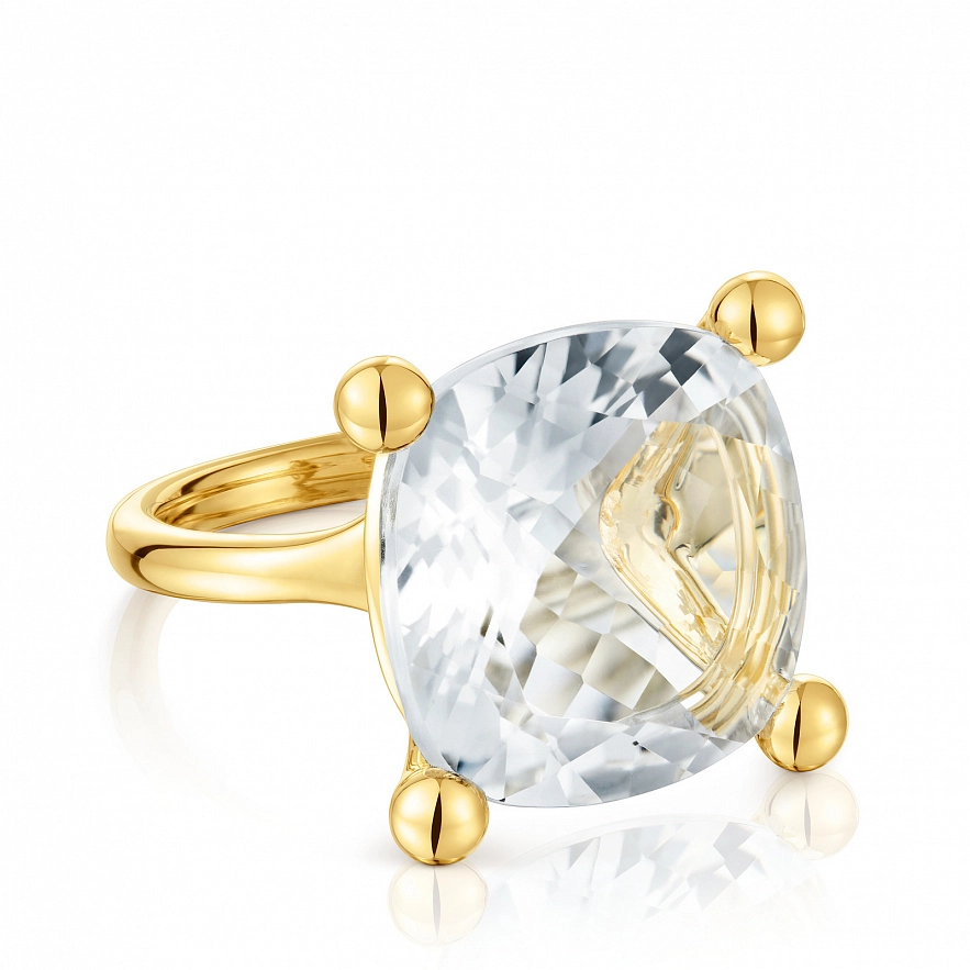 Кольцо TOUS Color White из серебра 925 пробы с покрытием Vermeil и ограненным горным хрустальным кварцем. Размер камня: 18 мм.