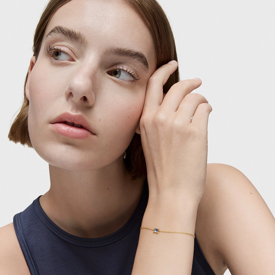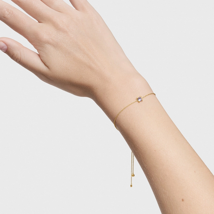 Браслет TOUS Color Pills из 18-каратного желтого золота с ограненным круглым танзанитом. Размер камня: 4 мм. Длина браслета: 24 см. Застежка-слайдер.