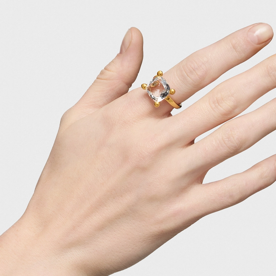 Кольцо TOUS Color White из серебра 925 пробы с покрытием Vermeil и ограненным горным хрустальным кварцем квадратной формы. Размер драгоценного камня: 11 мм.