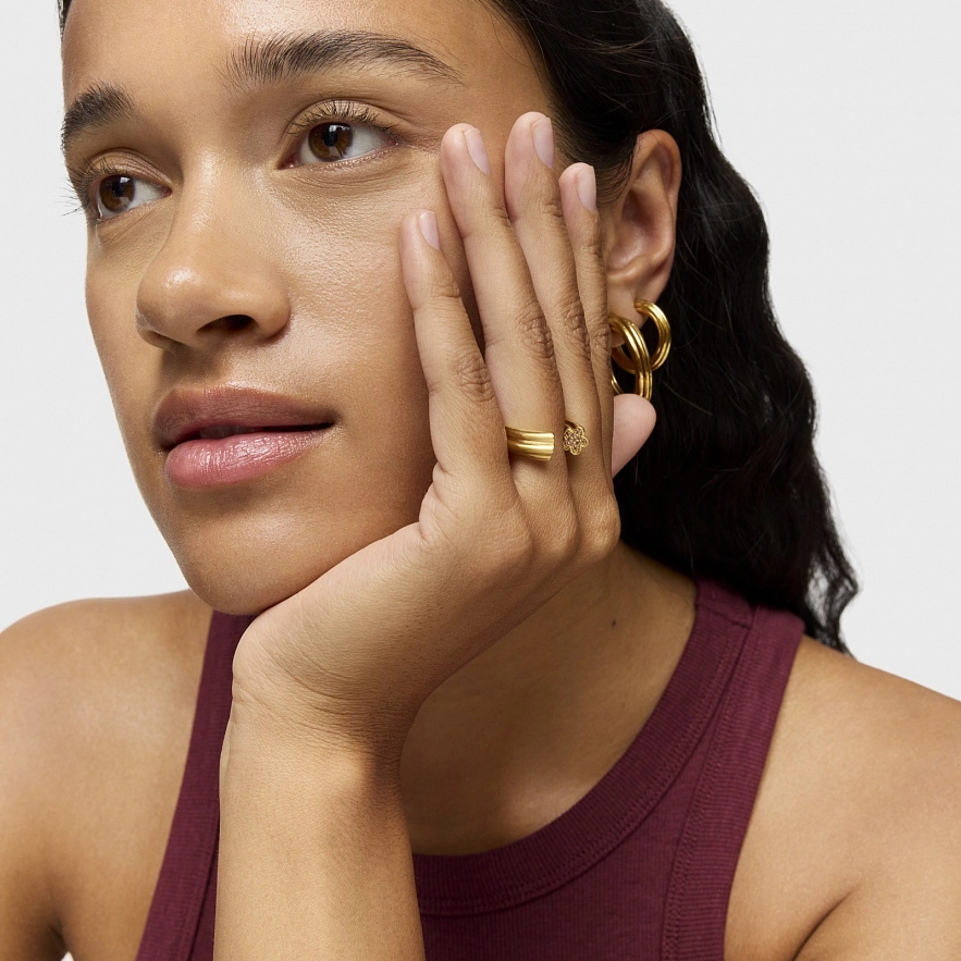 Кольцо TOUS 1950 из серебра 925 пробы с покрытием Vermeil с внутренним мотивом в форме цветка с круглыми ограненными родолитами. Размер драгоценных камней: 1 мм. Ширина мотива: 7,10 мм.