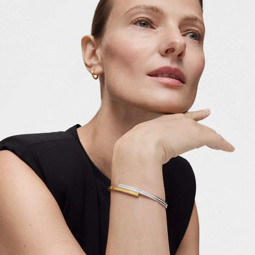 Браслет TOUS 1950 из серебра 925 пробы с покрытием Vermeil с внутренним мотивом в форме мишки из серебра 925 пробы и внутренним мотивом в форме сердца. Ширина мотивов 3,5 мм.