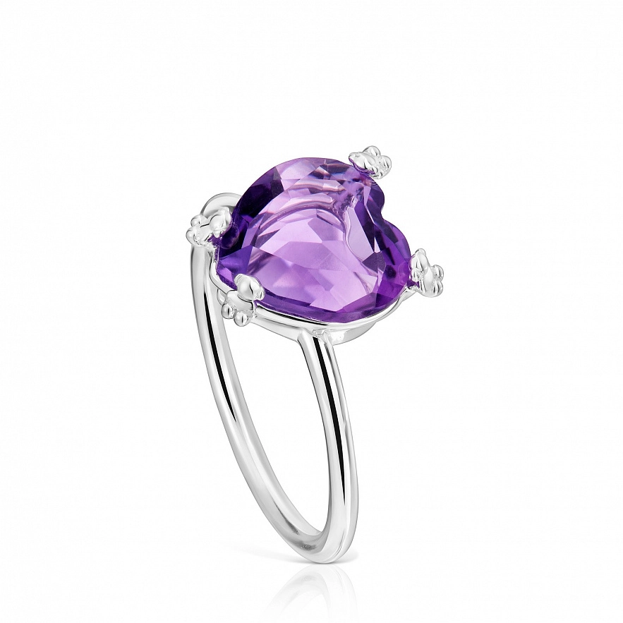 Кольцо TOUS Color Pills из серебра 925 пробы с ограненным аметистом в форме сердца. Размер камня: 9,8 х 10,2 мм. Высота кулона: 4,8 мм. Толщина кольца: 1,4 мм.