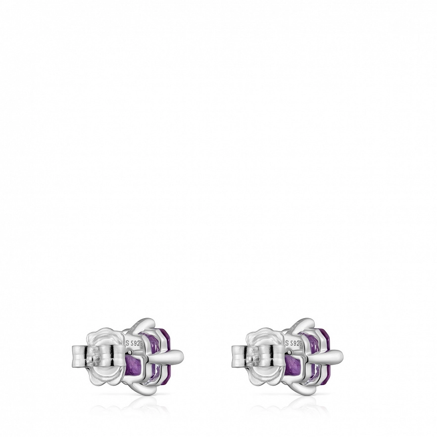 Серьги TOUS Color Lab из серебра 925 пробы и синтетического сапфира сиреневого цвета с огранкой, выращенного в лаборатории. Размер камня: 7 мм. Примечание: Изделие создано с использованием лабораторно выращенных драгоценных камней.