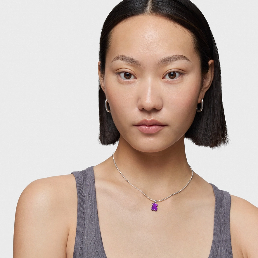 Кулон-мишка TOUS Sweet Dolls из стали сиреневого цвета и кольцом из серебра 925 пробы. Размер мишки: 12 мм. Это изделие не включает цепочку.