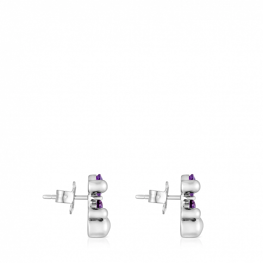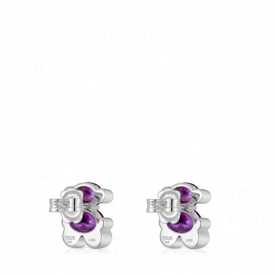 Серьги TOUS Color Bear LGG из серебра 925 пробы с синтетическим сапфиром сиреневого цвета, выращенным в лаборатории, в форме мишки. Размер сережек: 13 мм. Примечание: Изделие создано с использованием лабораторно выращенных драгоценных камней.