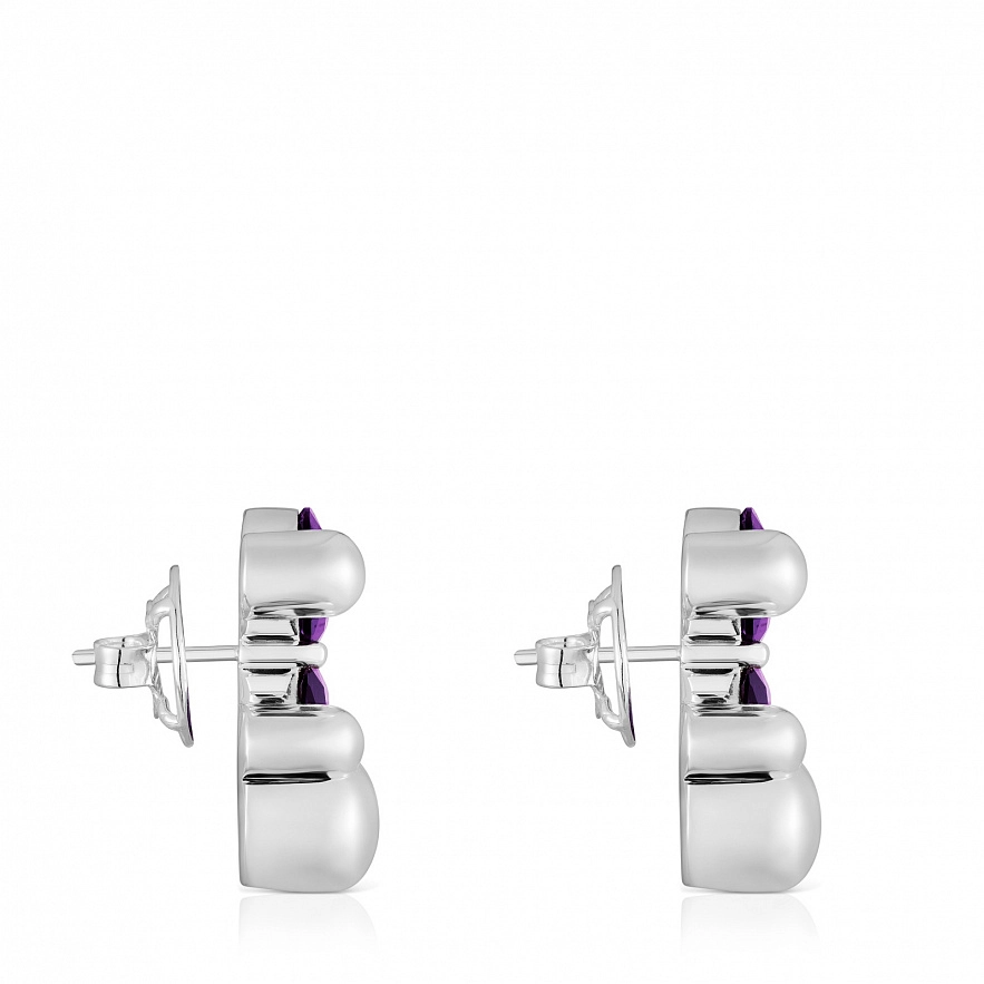 Серьги TOUS Color Bear LGG из серебра 925 пробы и синтетическим сапфиром овальной огранки, выращенным в лаборатории, сиреневого цвета в форме мишки. Размер сережек: 23 мм. Примечание: Изделие создано с использованием лабораторно выращенных драгоценных камней.