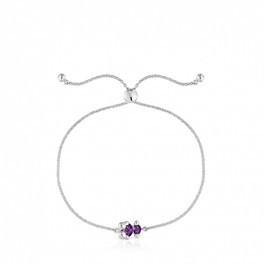 Браслет TOUS Color Bear LGG из серебра 925 пробы и синтетическими сапфирами овальной огранки, выращенными в лаборатории, сиреневого цвета в форме мишки. Размер мотива: 8 мм. Длина браслета: 25,5 см. Застежка-слайдер. Примечание: Изделие создано с использованием лабораторно выращенных камней.