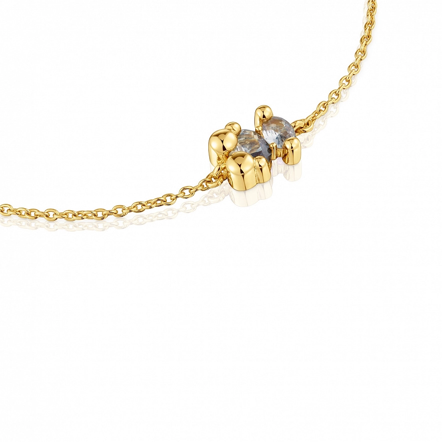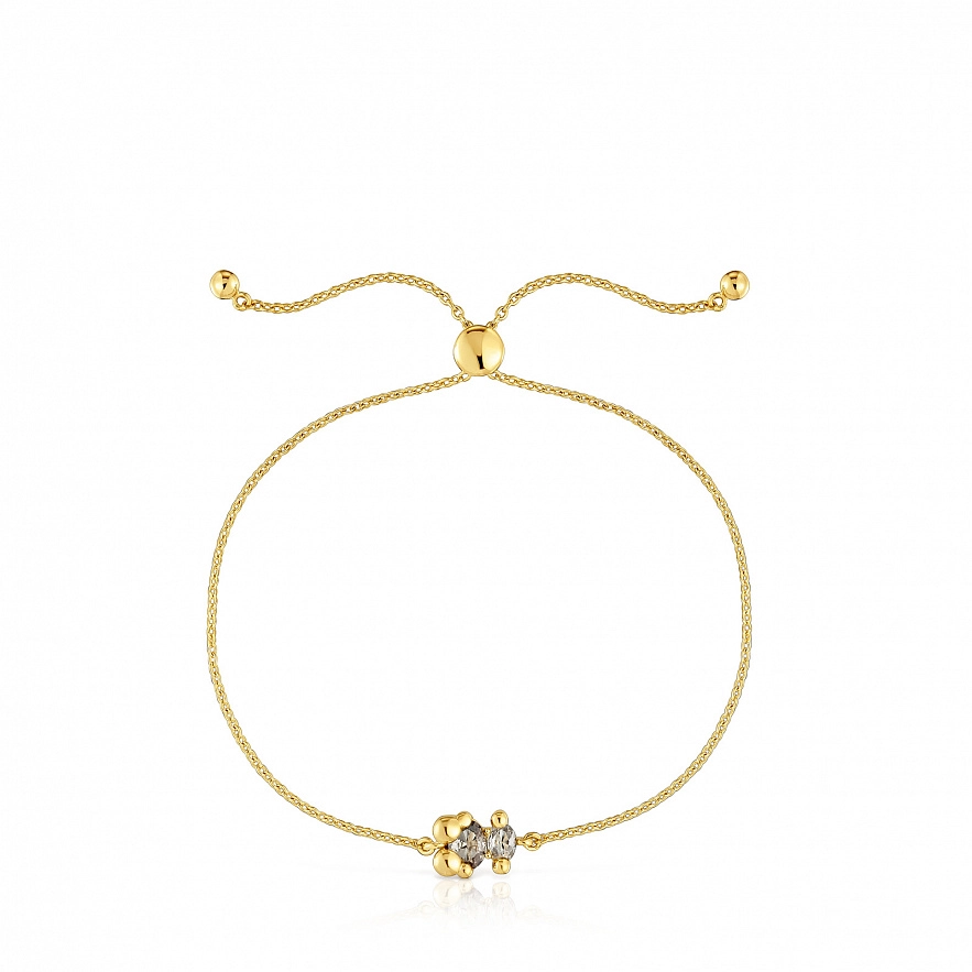 Браслет TOUS Color Bear LGG из серебра 925 пробы с покрытием Vermeil и синтетической зеленой шпинелью овальной огранки в форме мишки. Размер мотива: 8 мм. Длина браслета: 25,5 см. Застежка-слайдер. Примечание: Изделие создано с использованием лабораторно выращенных драгоценных камней.
