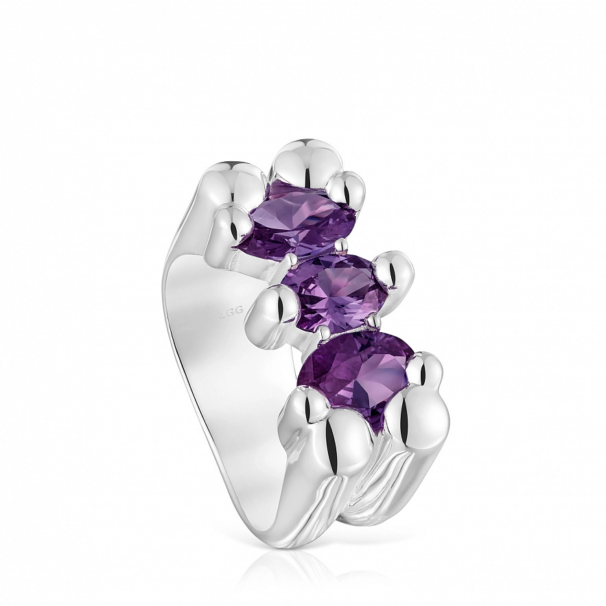Кольцо TOUS Color Bear LGG из серебра 925 пробы и синтетическим сапфиром овальной огранки, выращенным в лаборатории, сиреневого цвета в форме мишки. Размер мотива: 22 мм. Примечание: Изделие создано с использованием лабораторно выращенных драгоценных камней.