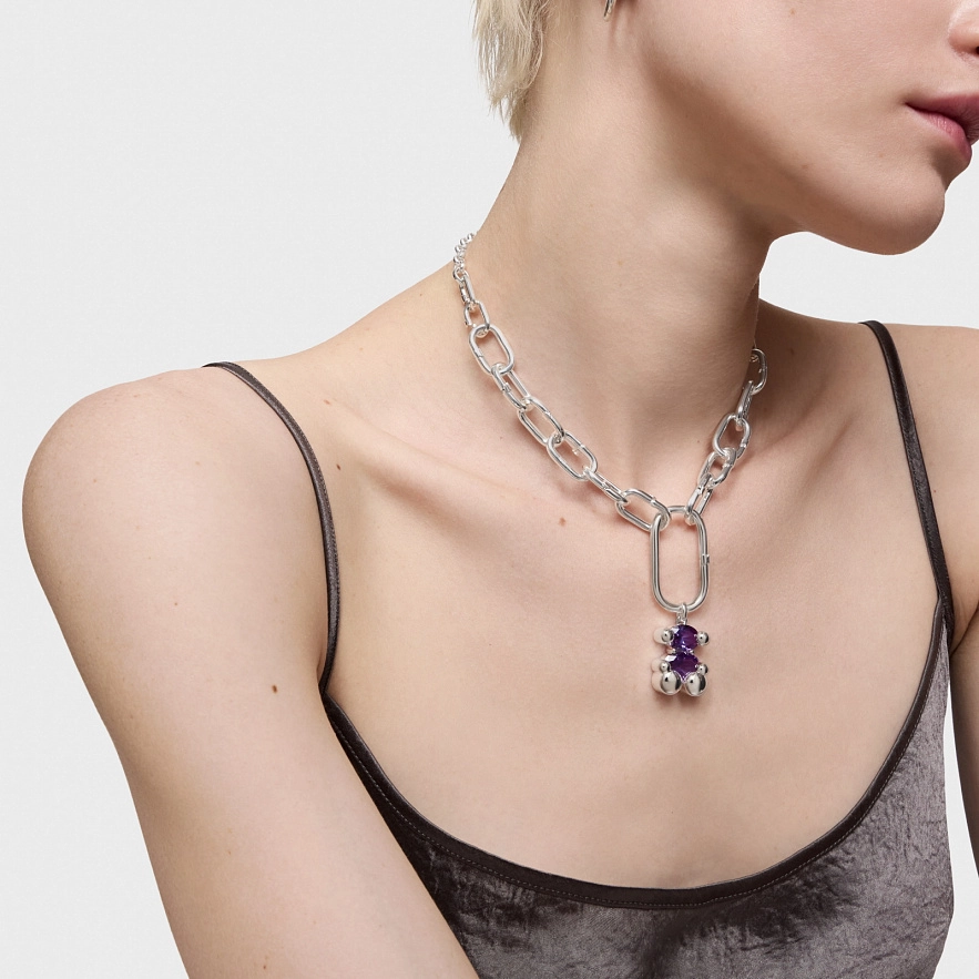 Кулон TOUS Color Bear LGG из серебра 925 пробы с синтетическим сапфиром сиреневого цвета овальной огранки в форме мишки, выращенного в лаборатории. Размер мотива: 23 мм. Это изделие не включает цепочку. Примечание: Изделие создано с использованием лабораторно выращенных драгоценных камней.