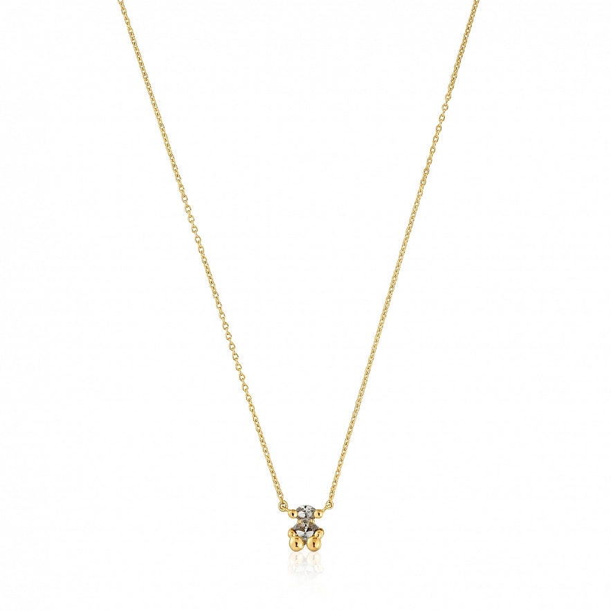 Колье TOUS Color Bear LGG из серебра 925 пробы с покрытием Vermeil и синтетической зеленой шпинелью овальной огранки в форме мишки. Размер мотива: 8 мм. Длина колье: 45 см. Застежка - лобстер.Примечание: Изделие создано с использованием лабораторно выращенных драгоценных камней.