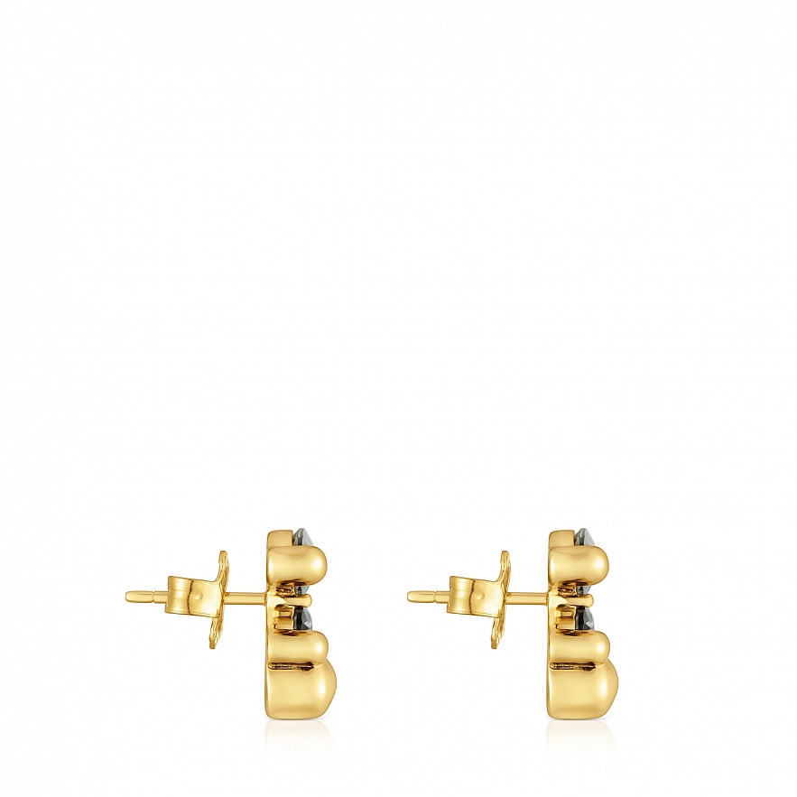 Серьги TOUS Color Bear LGG из серебра 925 пробы с покрытием Vermeil и с синтетической зеленой шпинелью овальной огранки в форме мишки. Размер сережек: 13 мм. Примечание: Изделие создано с использованием лабораторно выращенных драгоценных камней.