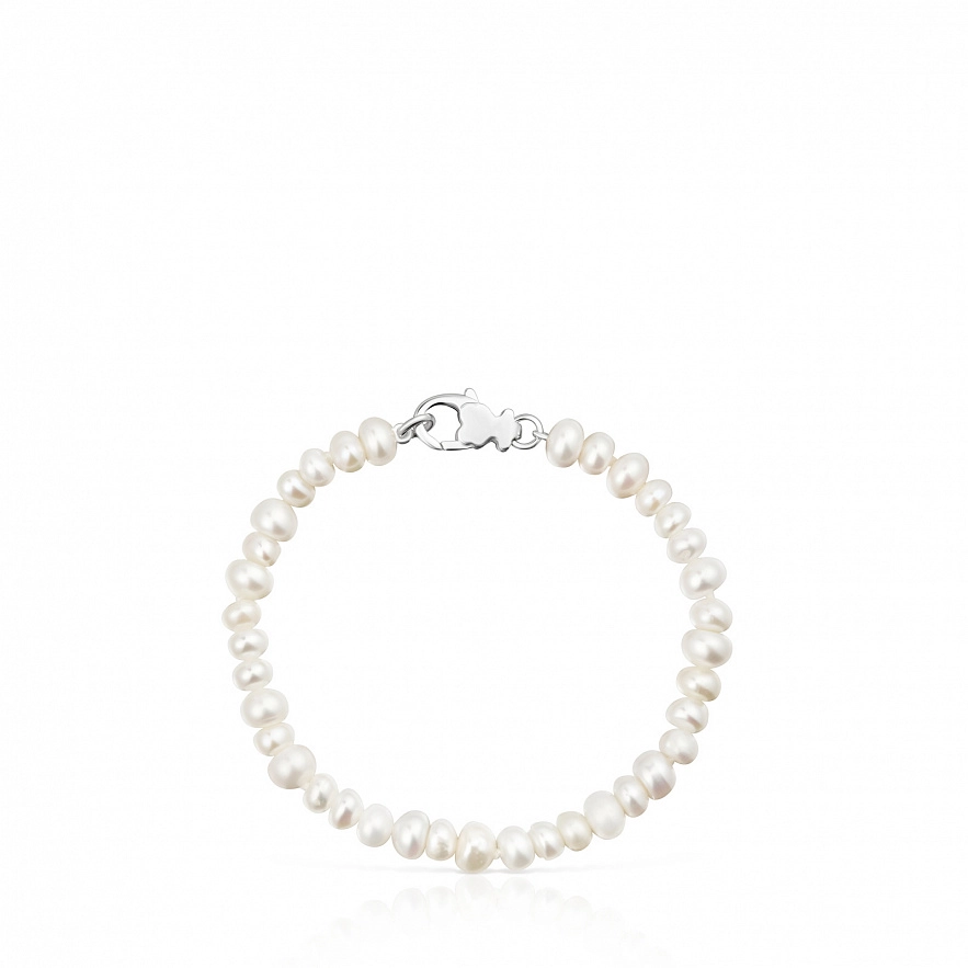 Браслет TOUS Basic из серебра 925 пробы и культивированного пресноводного жемчуга. Размер культивированного жемчуга: 4,5-5 мм. Длина браслета: 17,5 см. Застежка в виде лобстера с мишкой.