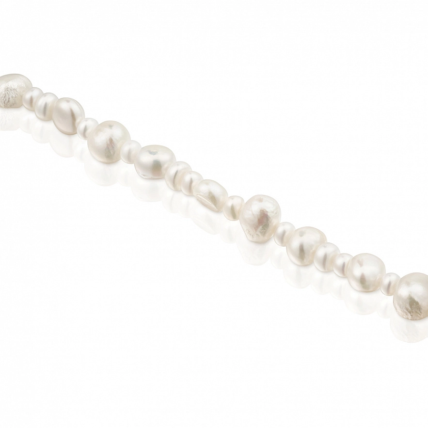 Браслет TOUS Basic из серебра 925 пробы и культивированного пресноводного жемчуга разного размера. Размер культивированного жемчуга: от 4,5 до 10 мм. Длина браслета: 18 см. Застежка в виде лобстера с мишкой.