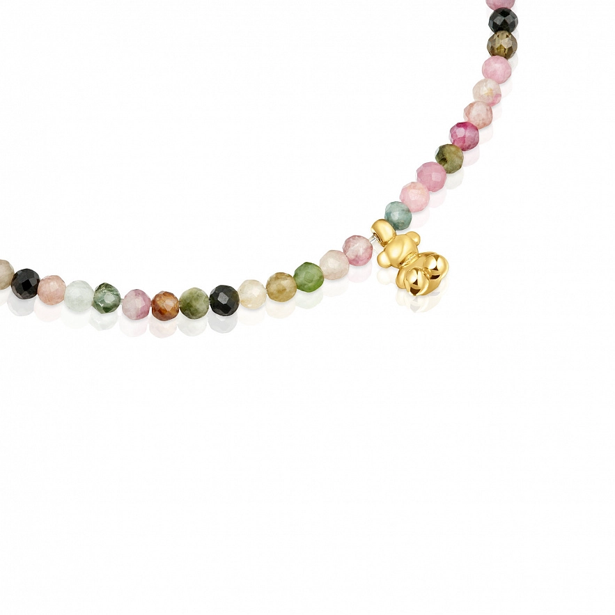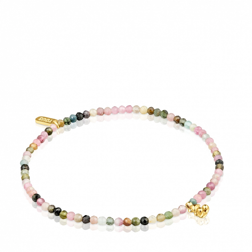 Браслет TOUS Bold Bear из серебра 925 пробы с покрытием Vermeil и шариками размером 2 - 2,5 мм с турмалином разных оттенков. Длина браслета: 16,5 см.