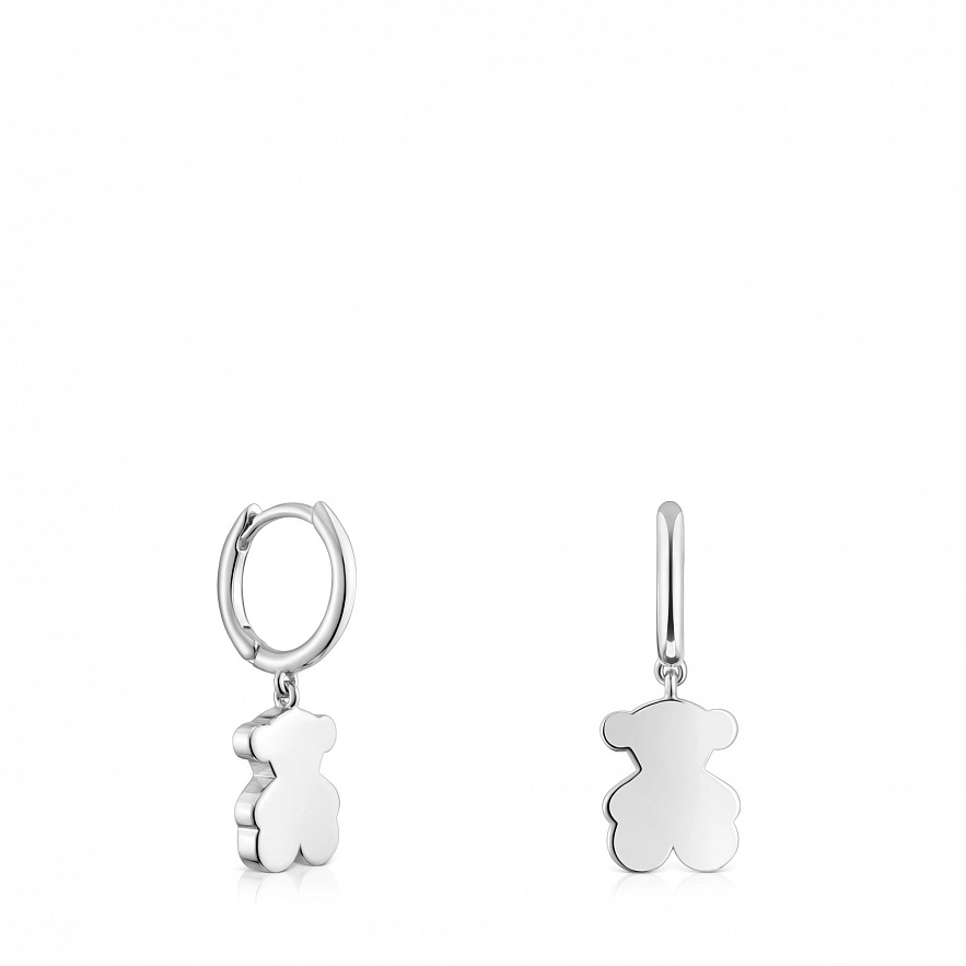 Серьги TOUS Sweet Dolls из серебра 925 пробы в форме кольца с подвеской в виде мишки. Размер сережек: 10 мм. Размер сережек: 8 мм.
