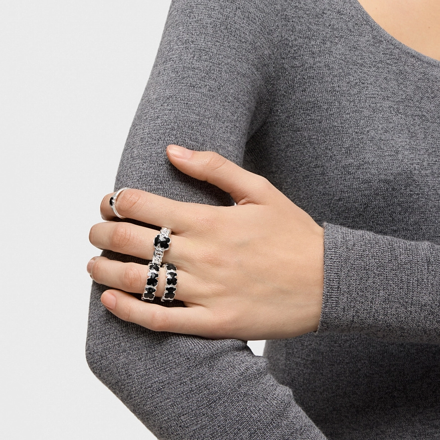 Кольцо TOUS Icon Color из серебра 925 пробы с мотивом мишки из ограненного оникса. Размер мотива мишки: 7,5 мм.