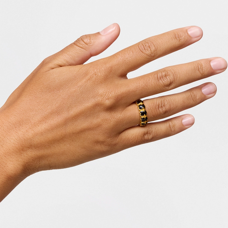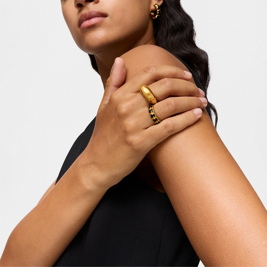 Кольцо TOUS Icon Color из серебра 925 пробы с покрытием Vermeil и мотивами мишки в ограненном ониксе. Размер мишки: 6 мм.
