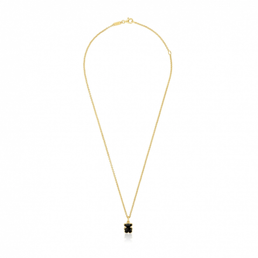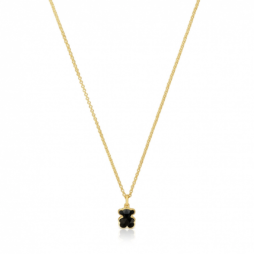 Колье TOUS Icon Color из серебра 925 пробы с покрытием Vermeil и мотивом мишки из ограненного оникса. Размер мишки: 10 мм. Длина колье: 45 см. Застежка лобстер.