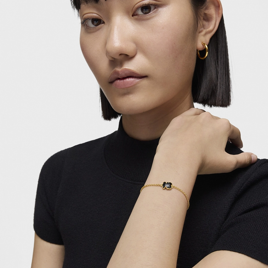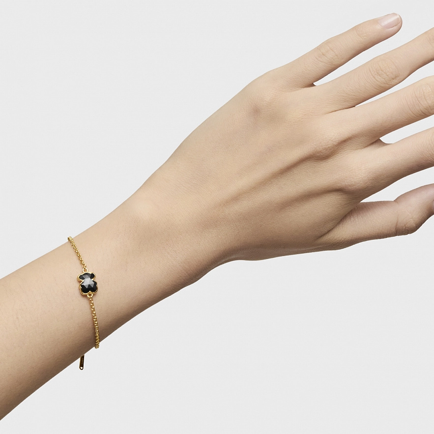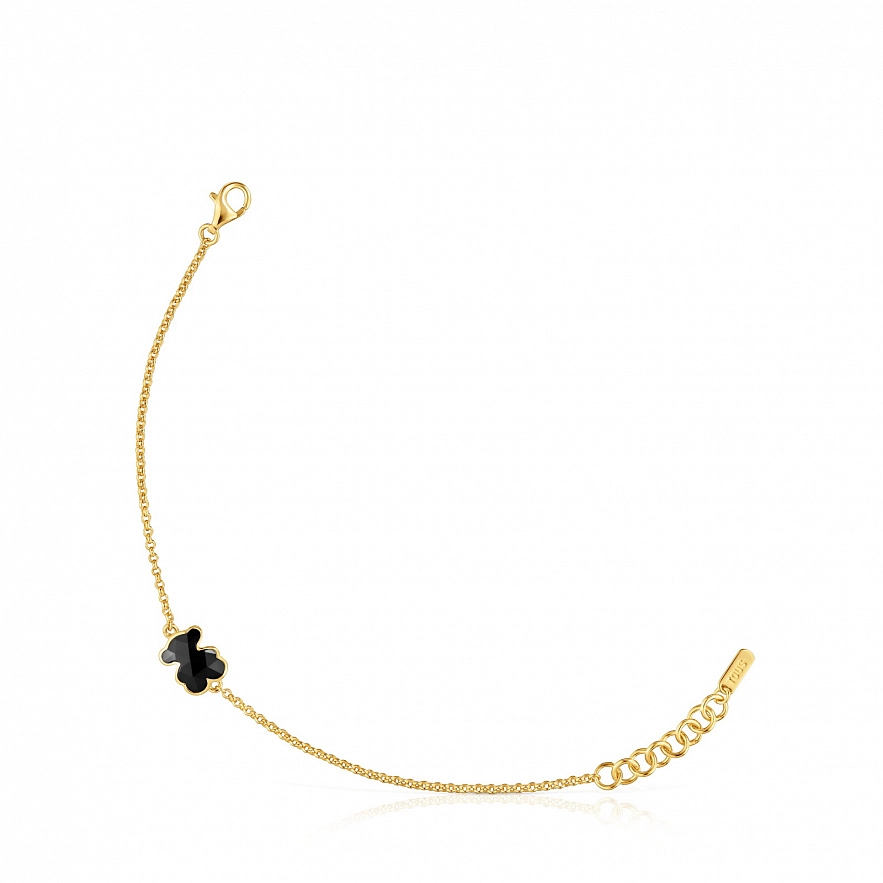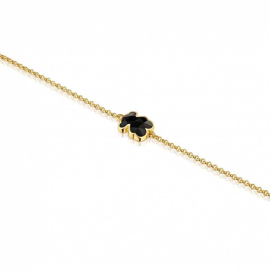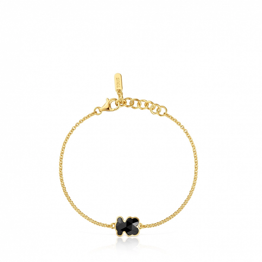Браслет TOUS Icon Color из серебра 925 пробы с покрытием Vermeil и мотивом медведя из ограненного оникса. Размер мишки: 10 мм. Длина браслета: 17,5 см. Застежка-лобстер.