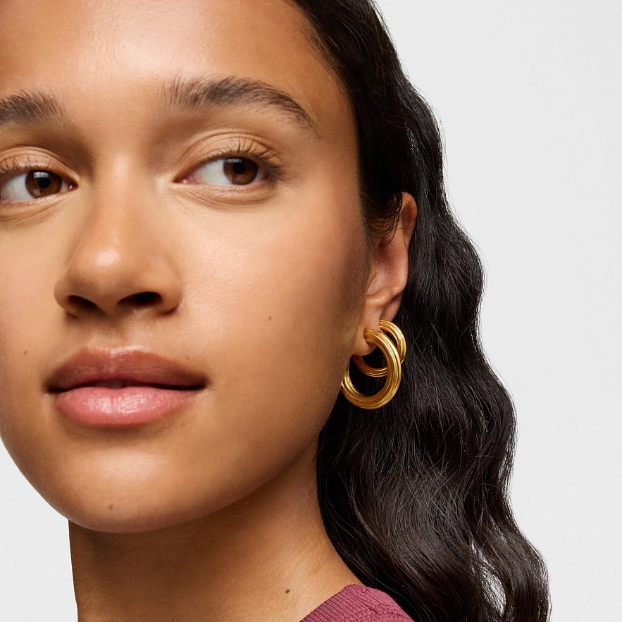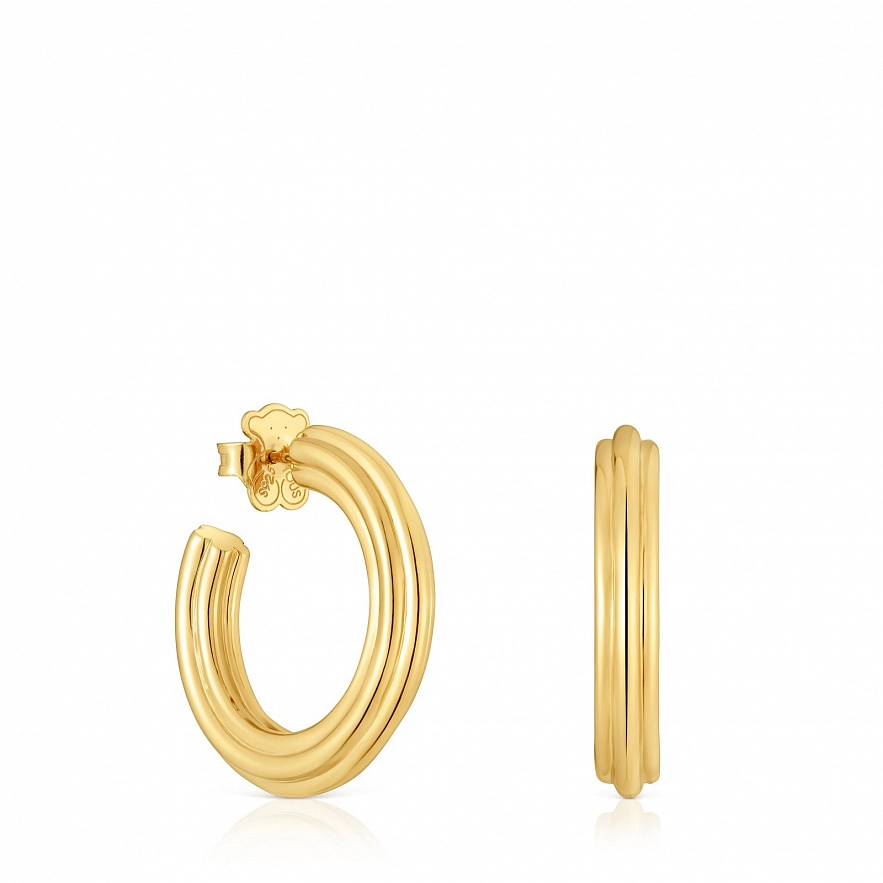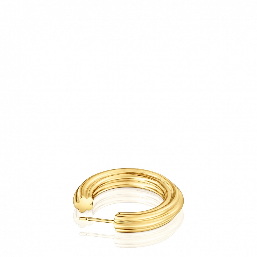 Серьги-кольца TOUS 1950 из серебра 925 пробы с покрытием Vermeil , с внутренним мотивом в виде цветка. Размер сережек: 30 мм.