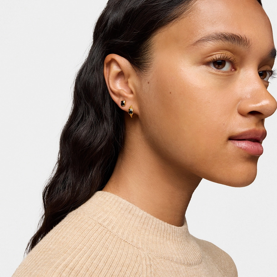 Серьги TOUS Icon Color из серебра 925 пробы с покрытием Vermeil с ограненным ониксом в форме мишки. Размер сережек: 6 мм.