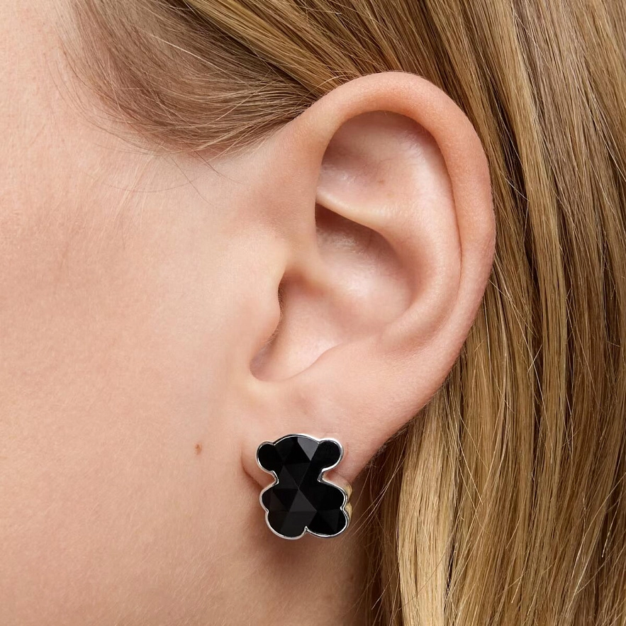 Серьги TOUS Color из серебра 925 пробы и ограненного оникса в форме мишки. Размер сережек: 16 мм.