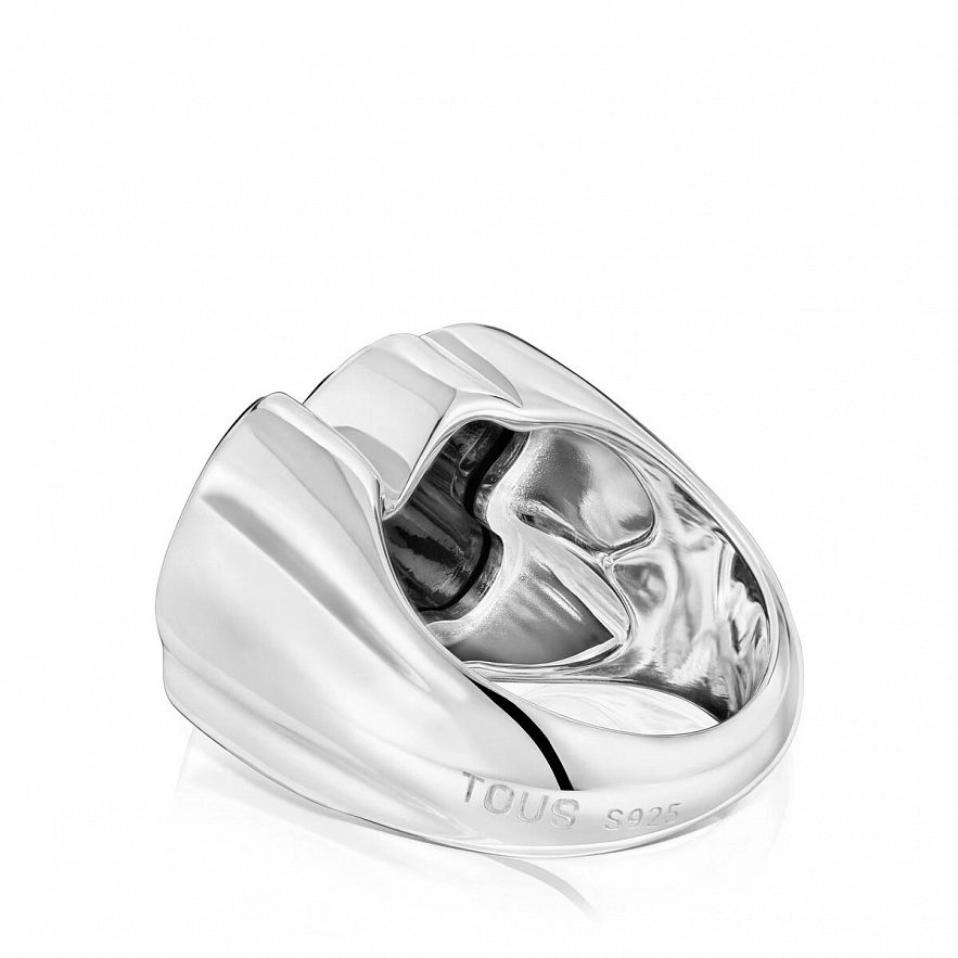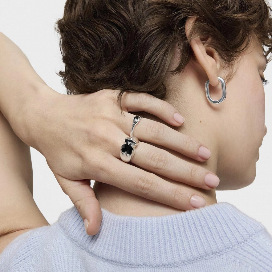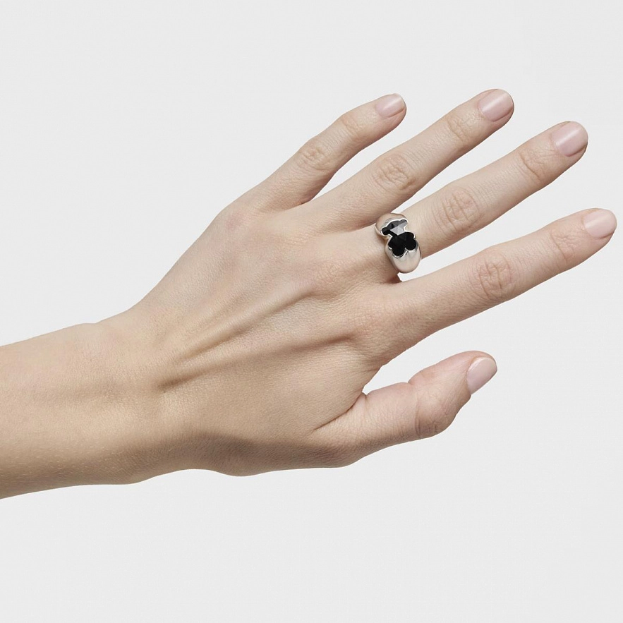 Кольцо TOUS Icon Color из серебра 925 пробы с ограненным ониксом в форме мишки. Размер мотива мишки: 22 х 16,5 мм. Толщина кольца: 2 мм.