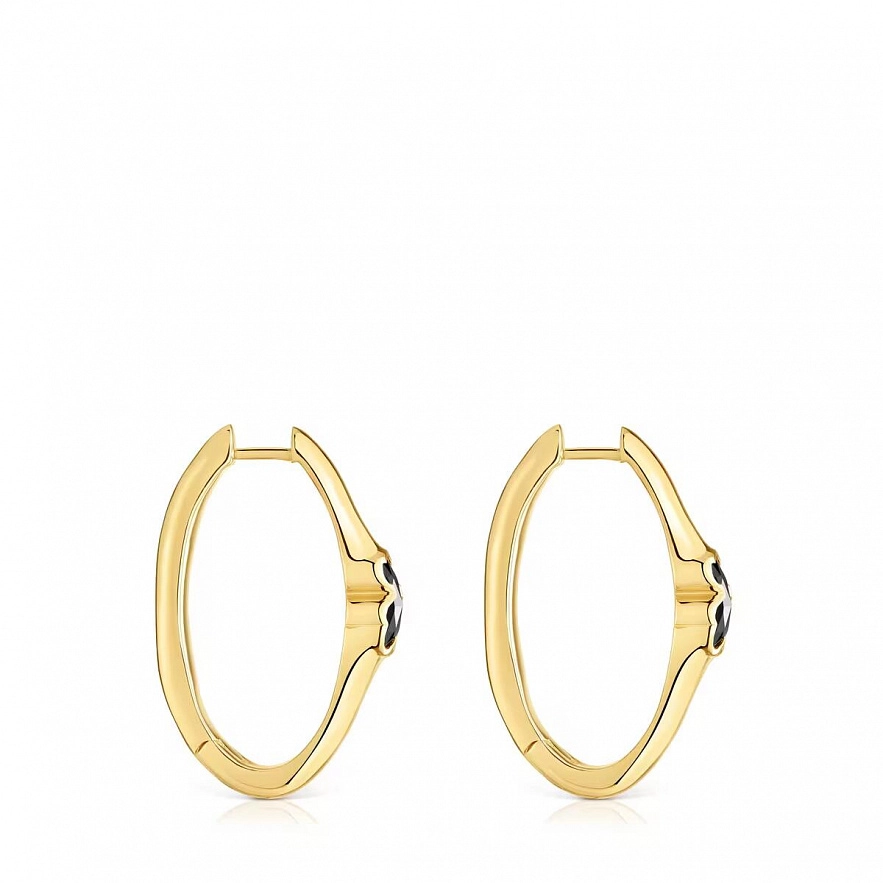 Серьги TOUS Icon Color из серебра 925 пробы с покрытием Vermeil и ограненного оникса в форме мишки. Размер мишки: 8 мм. Размер сережек: 26 х 13 мм.