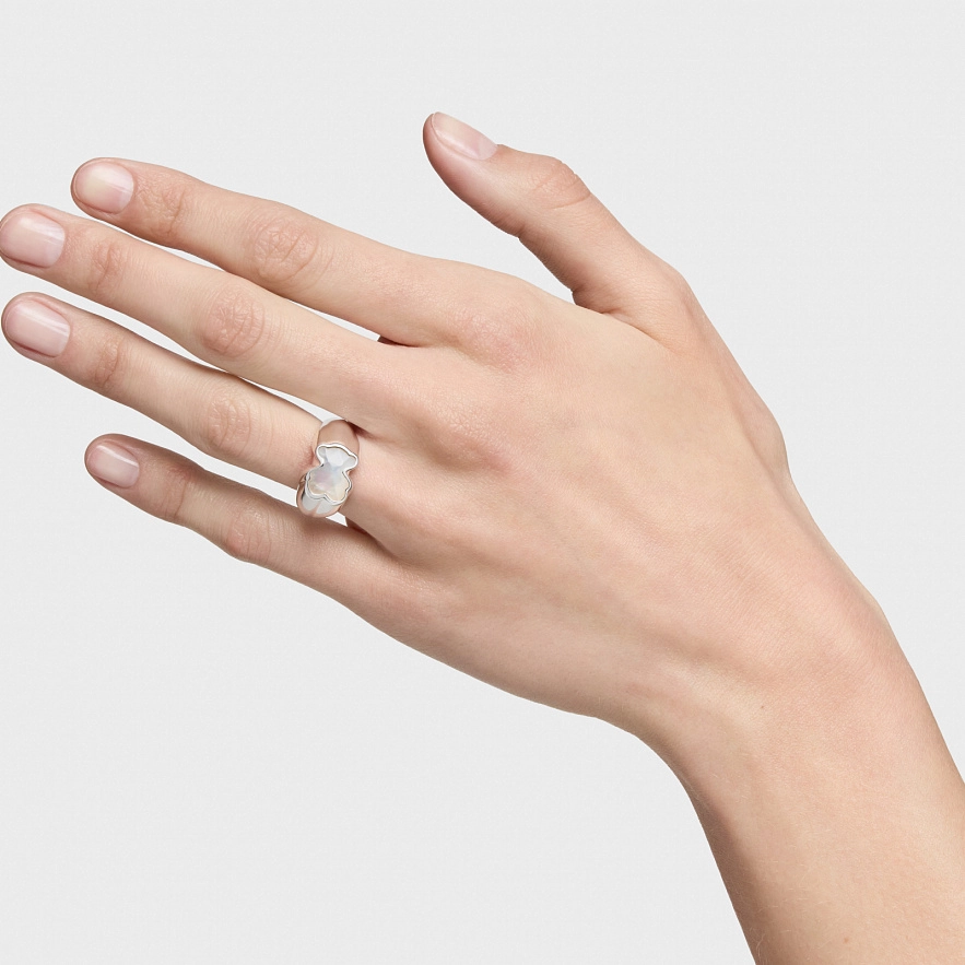 Кольцо TOUS Icon Color из серебра 925 пробы и ограненного перламутра в форме мишки. Размер мишки: 11 мм. Высота кольца: 5 мм.