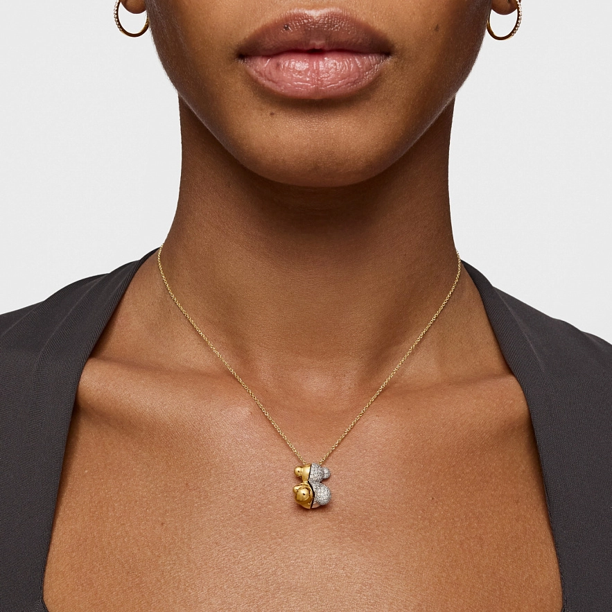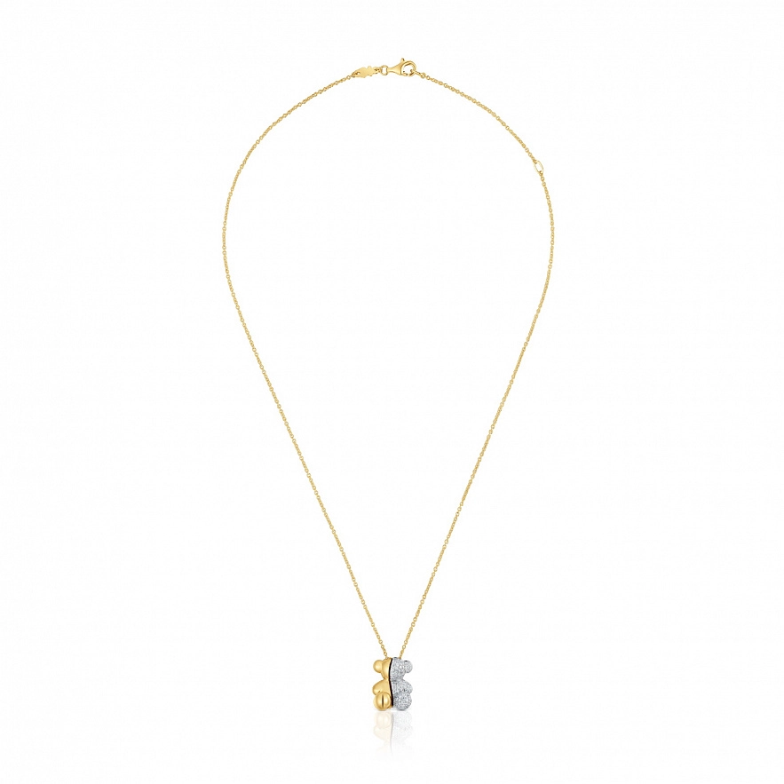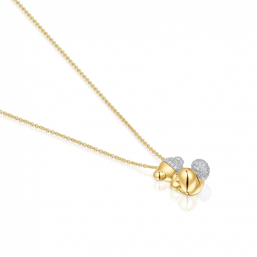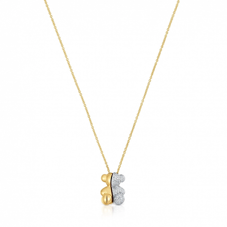 Колье TOUS Bold Bear из желтого золота 18 карат, белого золота 18 карат и бриллиантов 0,65 карата. Качество бриллиантов: H/SI. Размер мишки: 16 мм. Длина колье: 45 см. Застежка лобстер. Это изделие состоит из двух частей, соединенных вместе, в форме мишки.