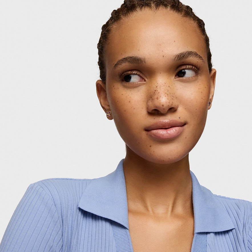 Серьги TOUS Daisy из серебра 925 пробы с покрытием Vermeil с мотивом бабочки и аметистом грушевидной огранки. Размер сережек: 12 мм.