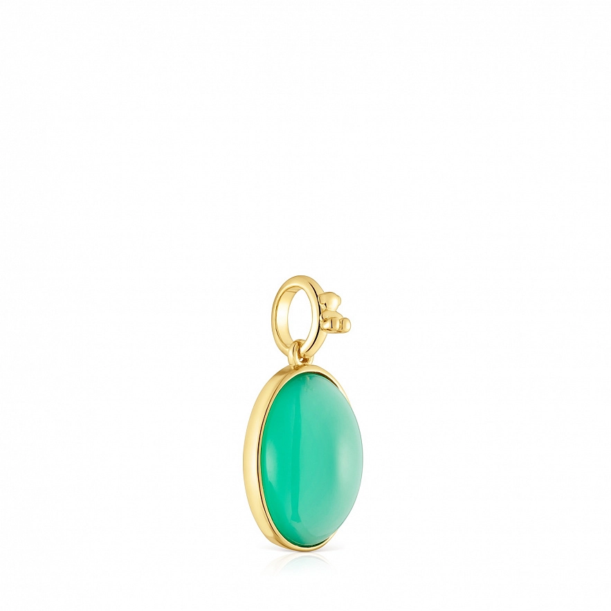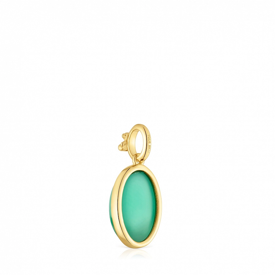 Кулон TOUS Medallions из серебра 925 пробы с покрытием Vermeil и зеленого халцедона, овальной формы с огранкой. Размер кулона: 13 мм. Это изделие не включает в себя цепочку.