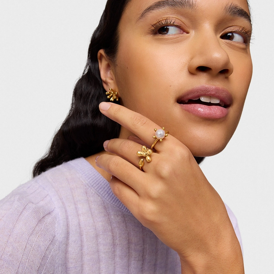 Кольцо TOUS Garden из серебра 925 пробы с покрытием Vermeil и цветочным мотивом и культивированной пресноводной жемчужиной. Размер шарма: 8 мм.