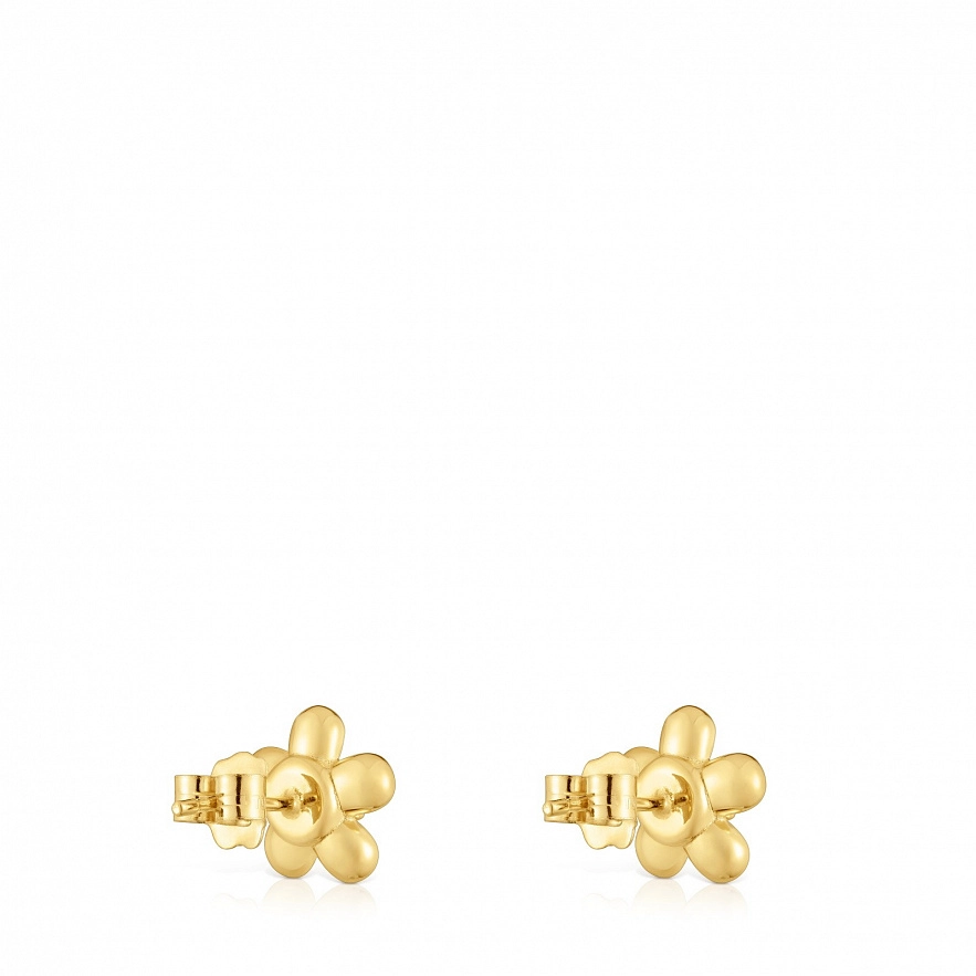 Серьги TOUS Daisy из желтого золота 18 карат, цветочный мотив и культивированный пресноводный жемчуг. Размер сережек: 10 мм.