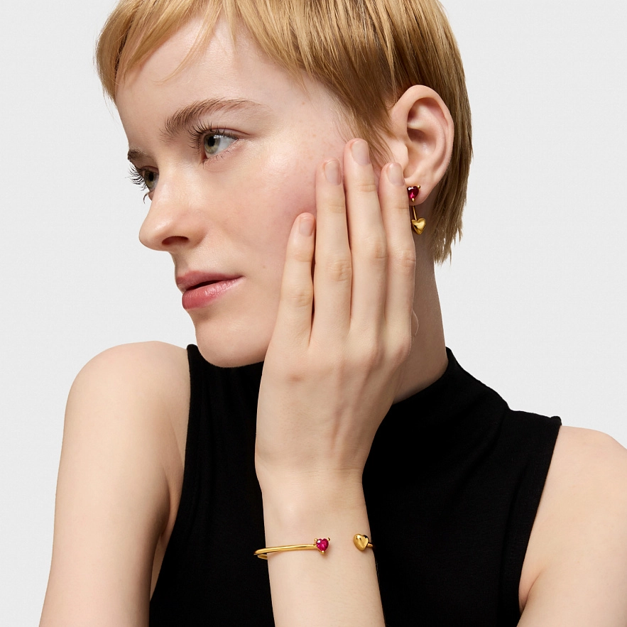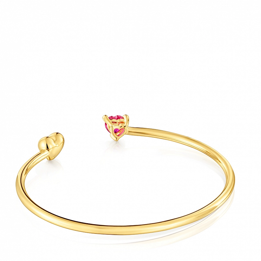 Браслет TOUS Garden of Love LGG из серебра 925 пробы с покрытием Vermeil с мотивом сердца и синтетическим рубином огранки в форме сердца. Размер камня: 6 мм. Размер мотива: 8 мм. Примечание: изделие создано с использованием лабораторно выращенных драгоценных камней.